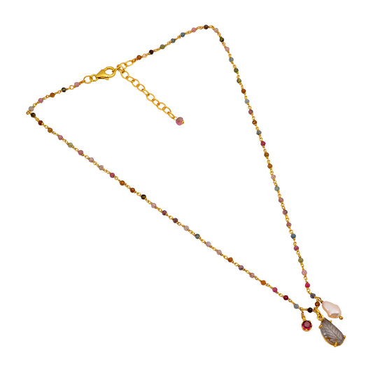 925 Silver Gold Plated Handcrafted Tourmaline & Pearl Necklace