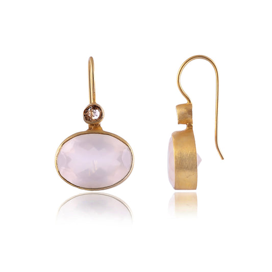 Hand Crafted Silver Glod Plated Rose Quartz/dimond Earring
