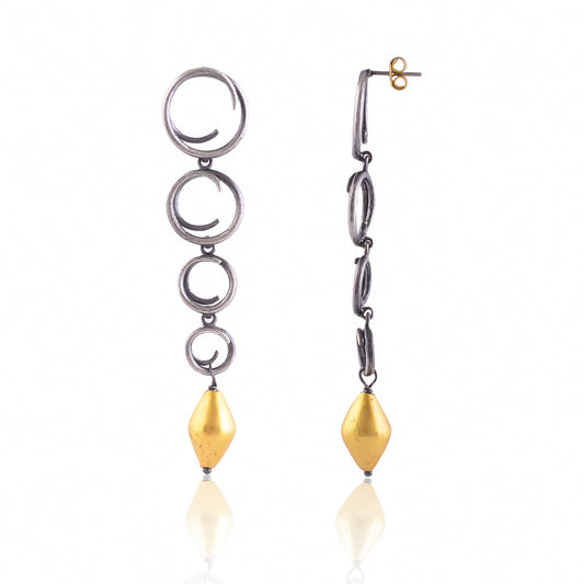 Hand crafted Silver Black Plated With Gold Wax Bead Earring