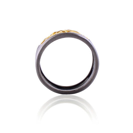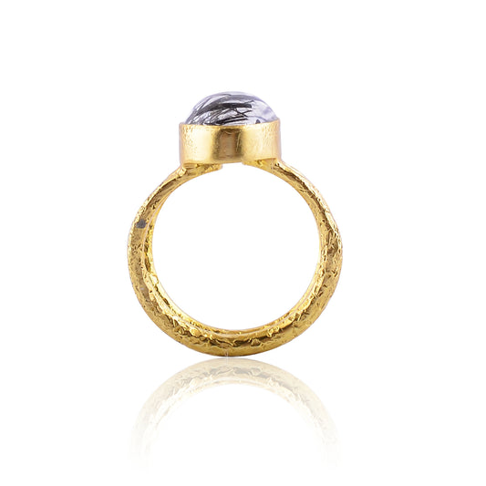 Designer Handcrafted Silver Gold Plated Black Rutile Ring