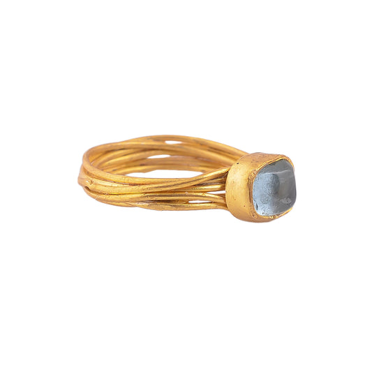 Designer Handcrafted Silver Gold Plated Aquamarine Ring