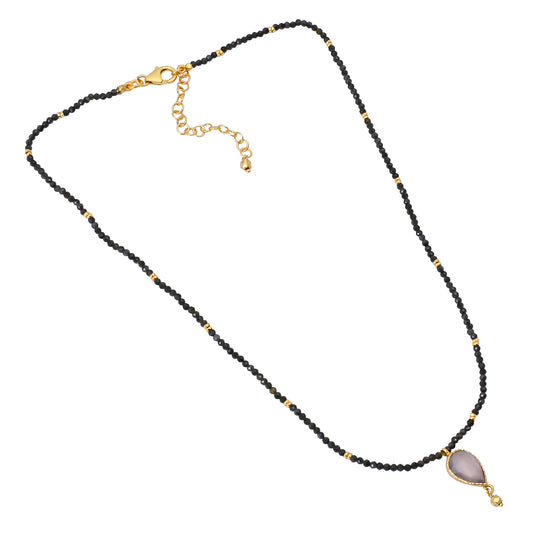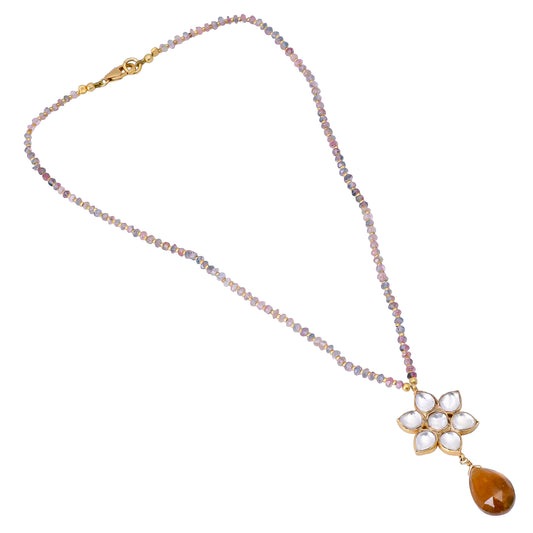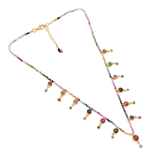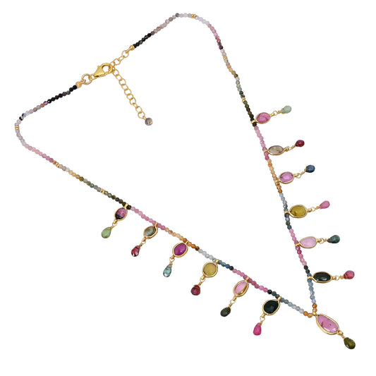 Silver Gold Plated Tourmaline Necklace With Jadau Tourmaline Drop Pendant