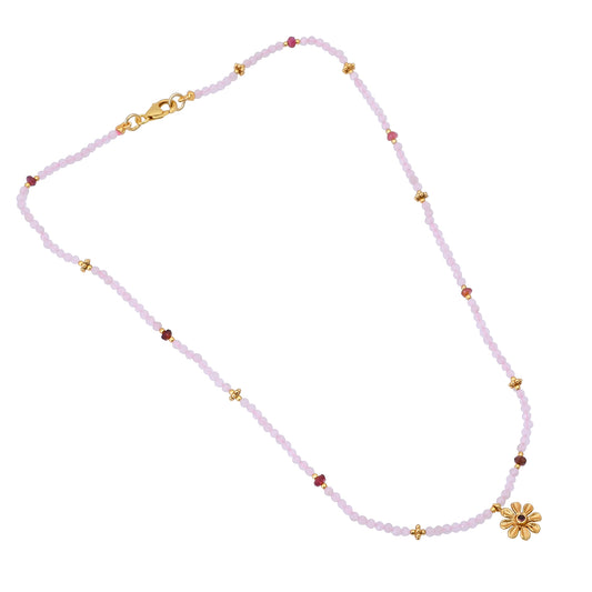 Silver Gold Plated Pink Opal and Amethyst Necklace