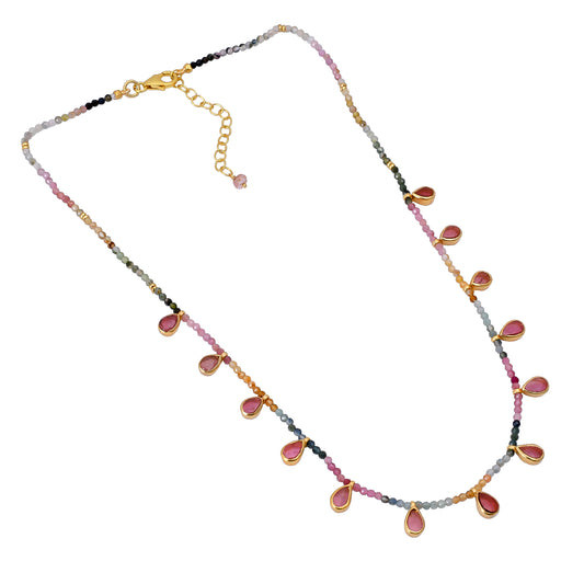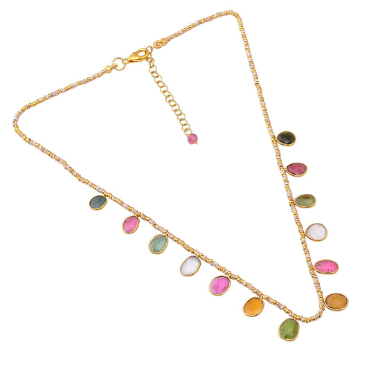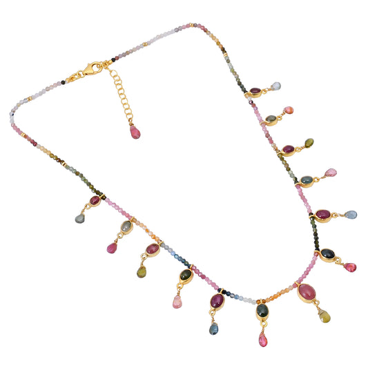 Handcrafted Silver Gold Plated Multi Tourmaline Pendant Necklace