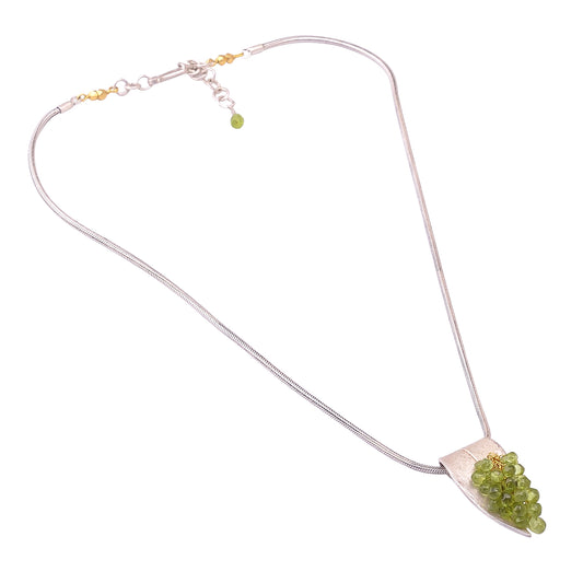 Indian Handcrafted Silver Leaf With Peridot Drops Cluster Necklace