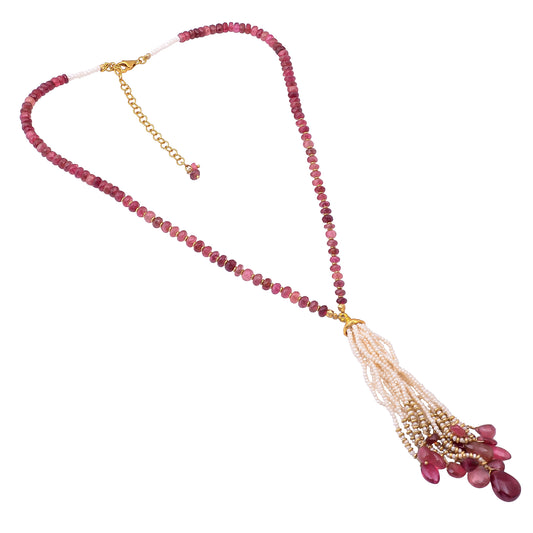 Handmade Silver Ruby Pendant Washer Bead Long Necklace