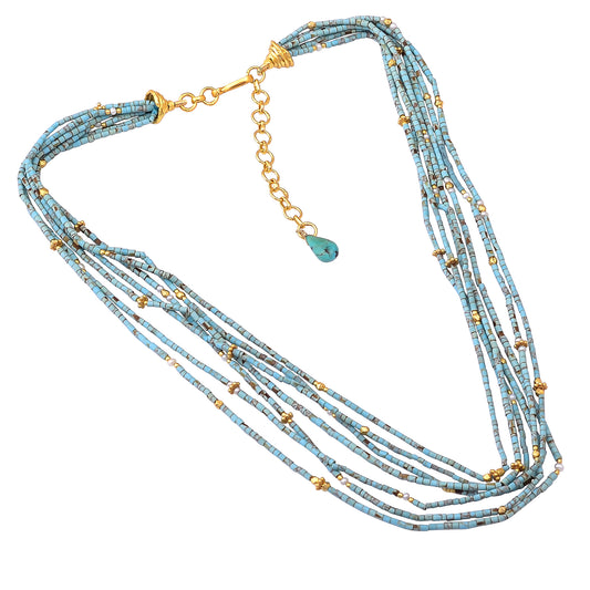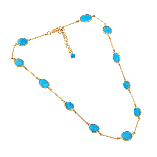 Handcrafted Silver Gold Plated Turquoise Collet Pipe Necklace