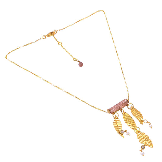 Handcrafted Silver Gold Plated Tourmaline Ruff/diamond Leaf Charm Necklace