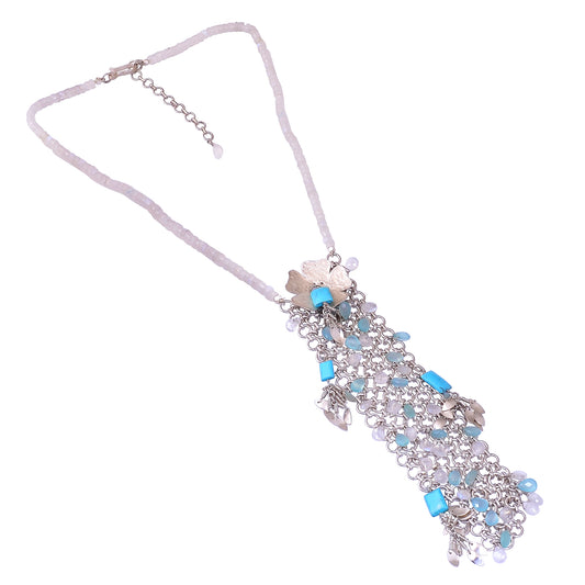 Silver Rainbow Moonstone/Turquoise Flower Link Jaal Necklace