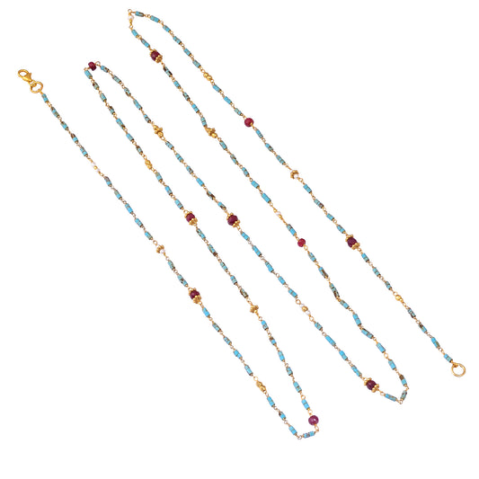 Handmade Silver Gold Plated Turquoise Tubes/ruby Bead Necklace