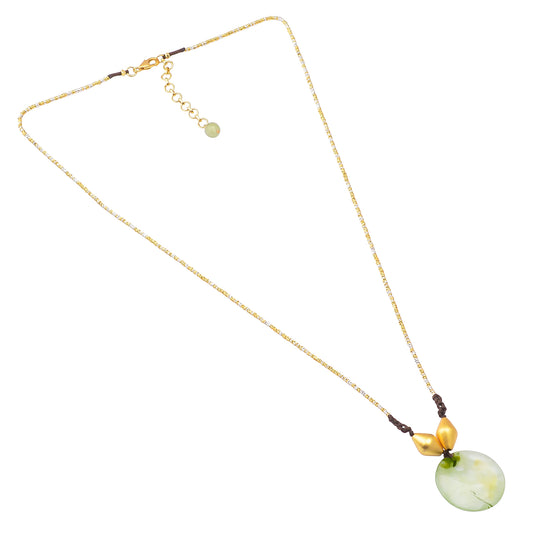 Indian Handcrafted Silver Gold Plated Prehnite Tumble Pendant Necklace
