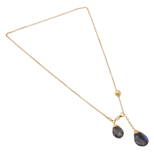 Indian Handcrafted Silver Gold Plated Labrodarite Badam Necklace