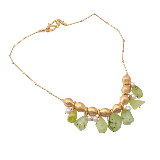 Indian Handmade Silver Gold Plated Prehnite Necklace