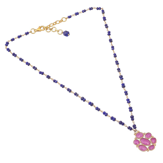 Indian Handcrafted Silver Gold Plated Ruby Pendant/lapis Necklace