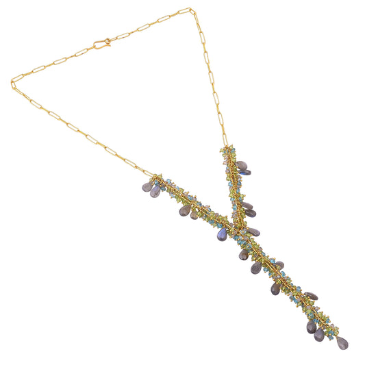 Indian Handmade Silver Gold Plated Peridot/apetite/labrodarite Grape Cluster Necklace