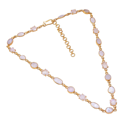 Indian Handmade Silver Gold Plated Rainbow Moonstone Necklace