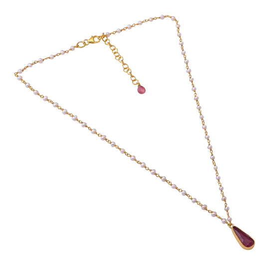 Indian Handcrafted Silver Gold Plated Pink Tourmaline Pendant/pearl Necklace