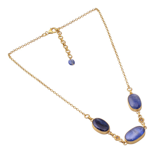 Indian Handmade Silver Gold Plated Kyanite/Diamond Necklace