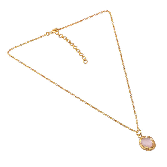 Indian Handcrafted Silver Gold Plated Rose Quartz Pendant Necklace