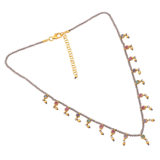 To stylish, a stunning collection of multi-stoned and multi-coloured necklaces hand done with pure finishing and silver-gold plating.