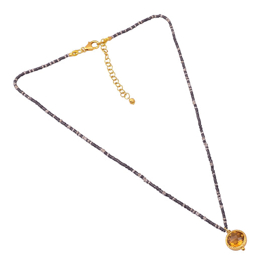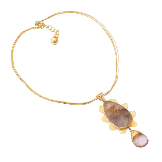 Indian Handmade Silver Gold Black Plated Beer Quartz Pendant Necklace