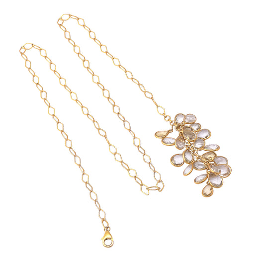 Handcrafted Silver Gold Plated Citrine Drop Cluster Necklace