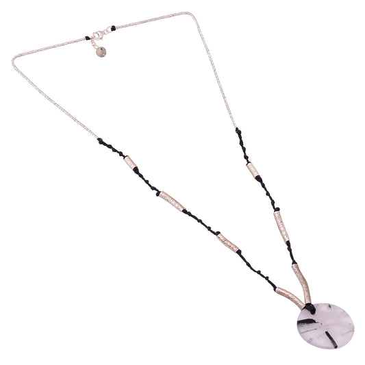 Indian Handcrafted Silver Black Rotile Texture Pipe Thread Necklace