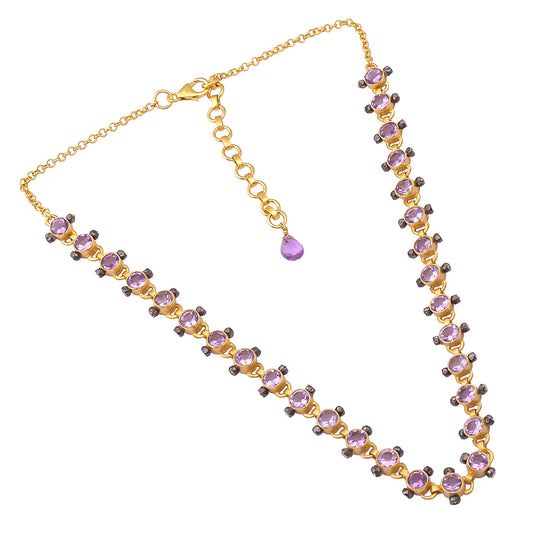 Indian Handcrafted Silver Gold Black Plated Amethyst Necklace