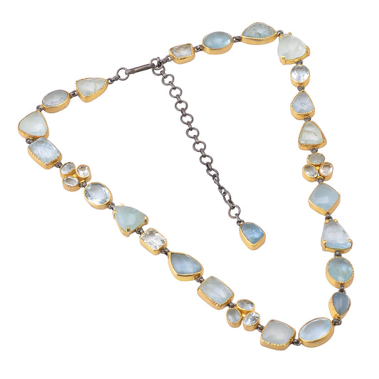 Indian Handmade Silver Gold Black Plated Aquamarine Necklace