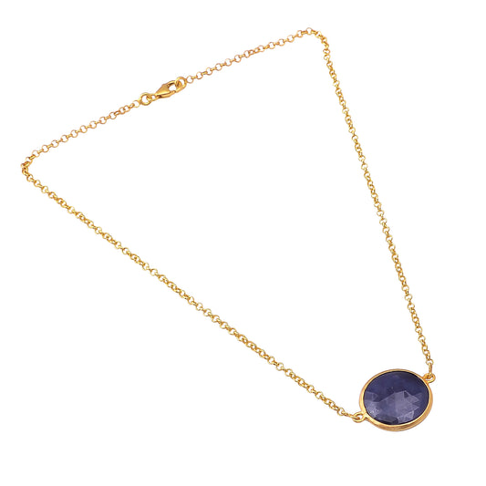 Handcrafted Silver Gold Plated Blue Sapphire Necklace