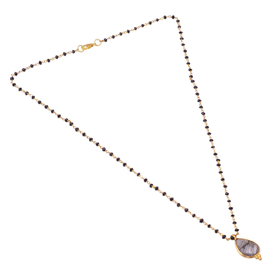 Handmade Silver Gold Plated Black Rutile Pendant/black Onyx Necklace