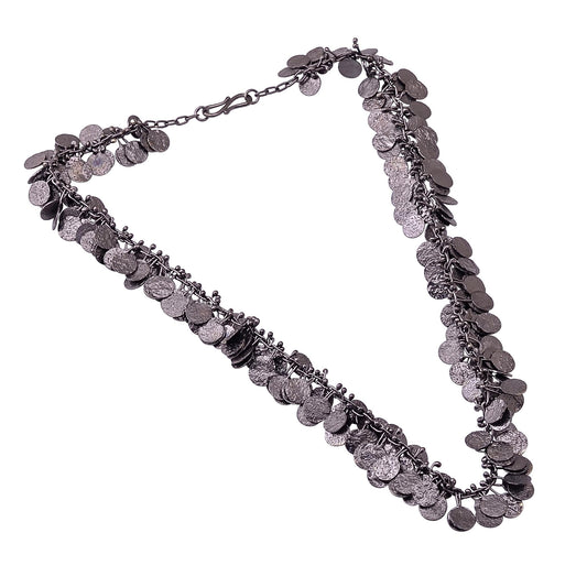 Indian Handmade Silver Black Plated Texture Sheet Charms Necklace