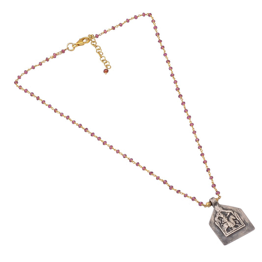 Handcrafted Silver Gold Plated Garnet Necklace With Patri Pendant