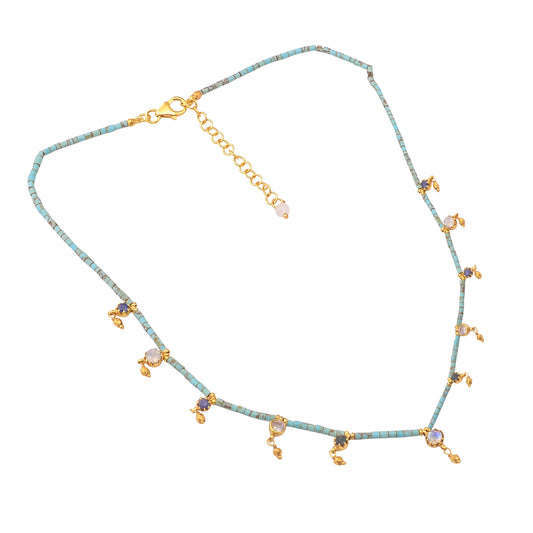 Handmade Silver Gold Plated Blue Sapphire/ Rainbow Moonstone/ Turquoise Tube Necklace