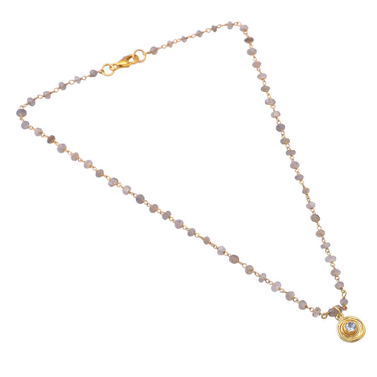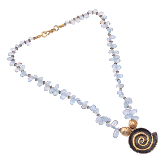 Indian Handcrafted Silver Gold Black Plated Spiral Pendant With Aquamarine/smoky Necklace