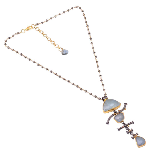 Indian Handcrafted Silver Gold Plated Aquamarine Pendant/labrodarite Necklace