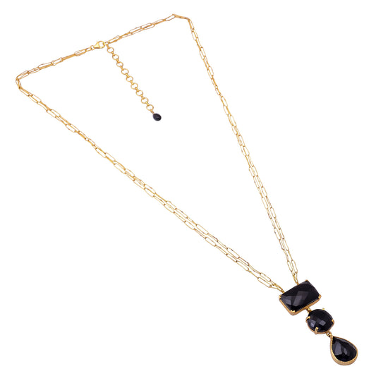 Handmade Silver Gold Plated Black Onyx Pendant Necklace