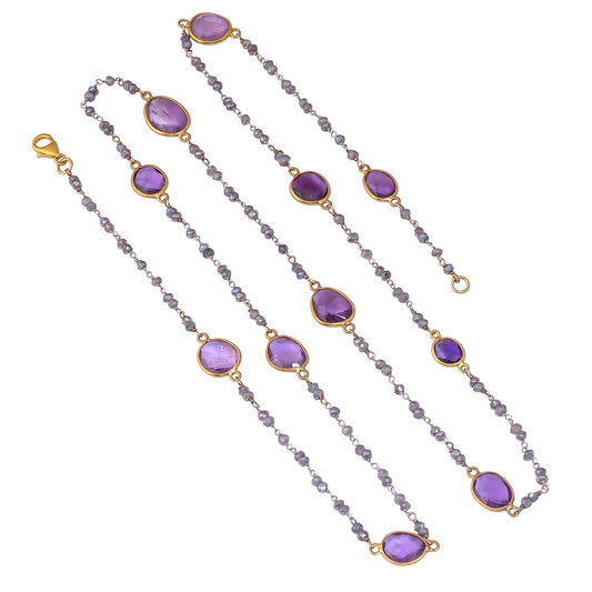Indian Handmade Silver Gold Plated Amethyst Collet/labrodarite Long Necklace