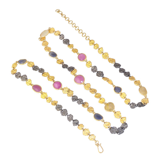 Indian Handcrafted Silver Gold Black Plated Multi Sapphire Melt Sheet Long Necklace