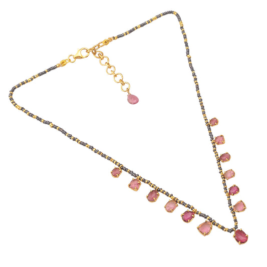 Indian Handmade Silver Gold Black Plated Pink Tourmaline Pendant Necklace
