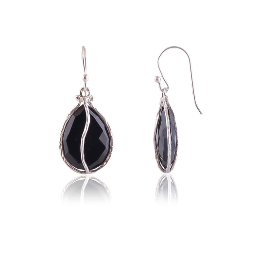 Handmade Silver Black Onyx Wire Wrap Earring