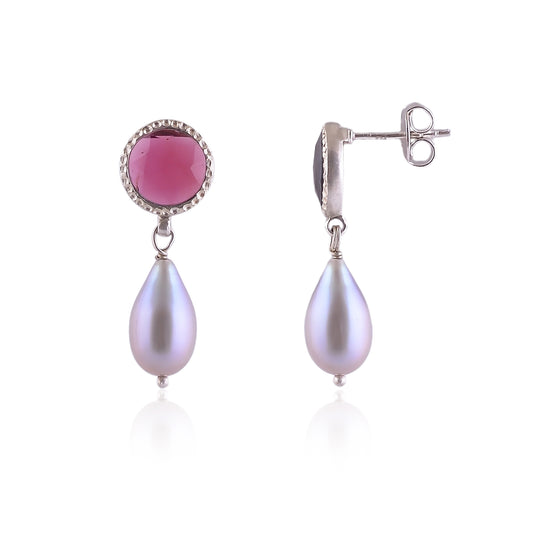 Indian Handcrafted Silver Garnet Grey Pearl Drop Earring