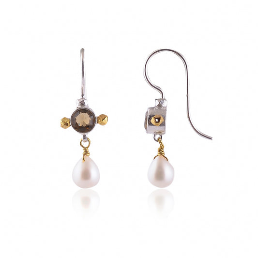 Handmade Silver Citrine With Pearl Drop Earring