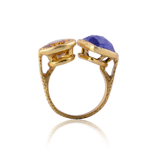 Indian Handcrafted Silver Gold Plated Lapis/citrine Ring