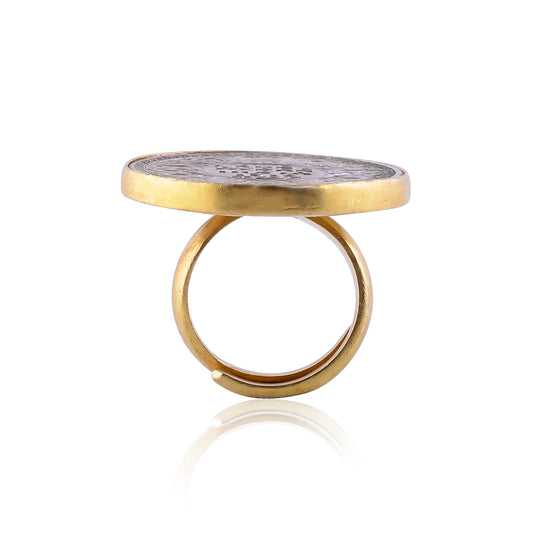 Handmade Silver Gold Plated Oxidized Old Coin Ring