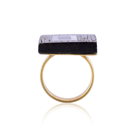 Handmade Silver Gold Plated Wooden Mop Inlay Ring