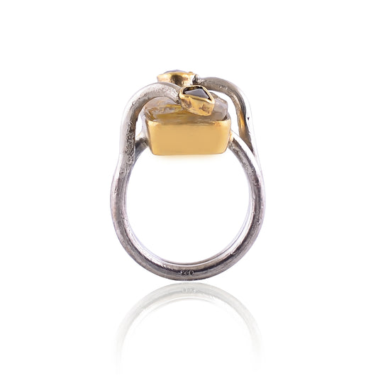 Handcrafted Silver Gold Plated Golden Rutile/diamond Ring